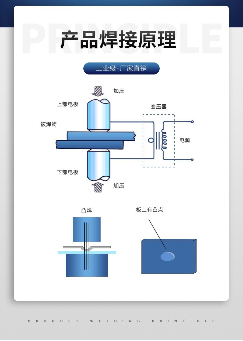 6、台式精密交流精密点焊机配备微电脑控制箱:性能强劲,广泛适用于电器开关的紫铜接,银触点,双金属片及小五金、精细工件的焊接。