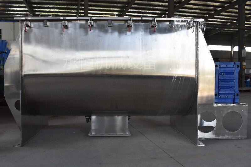 卧式螺带混合机该机是一种新型的混合设备,适用于制药、食品、化工、及其它工业对粉粒体或糊状物料的混合并应用于农药、兽药、食品、化学品、生物、养殖业、陶瓷、耐火材料、塑胶、复合肥等固-固(即粉体与粉体)固-浆(即粉体与胶浆液)的混合,还适应粘稠的物料混合。