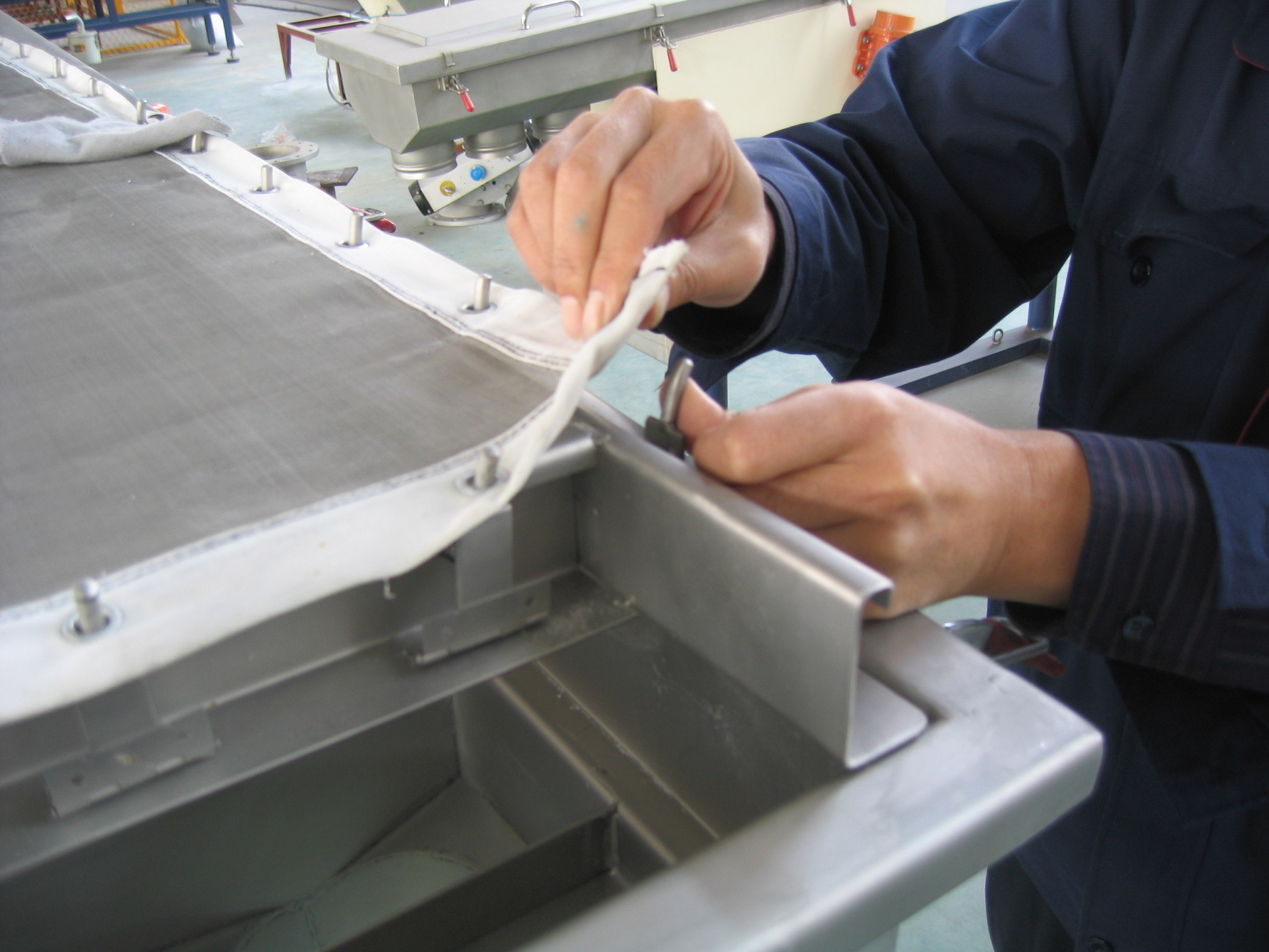 ▲筛网(板)用快速夹具夹紧,方便更换筛网及清理;