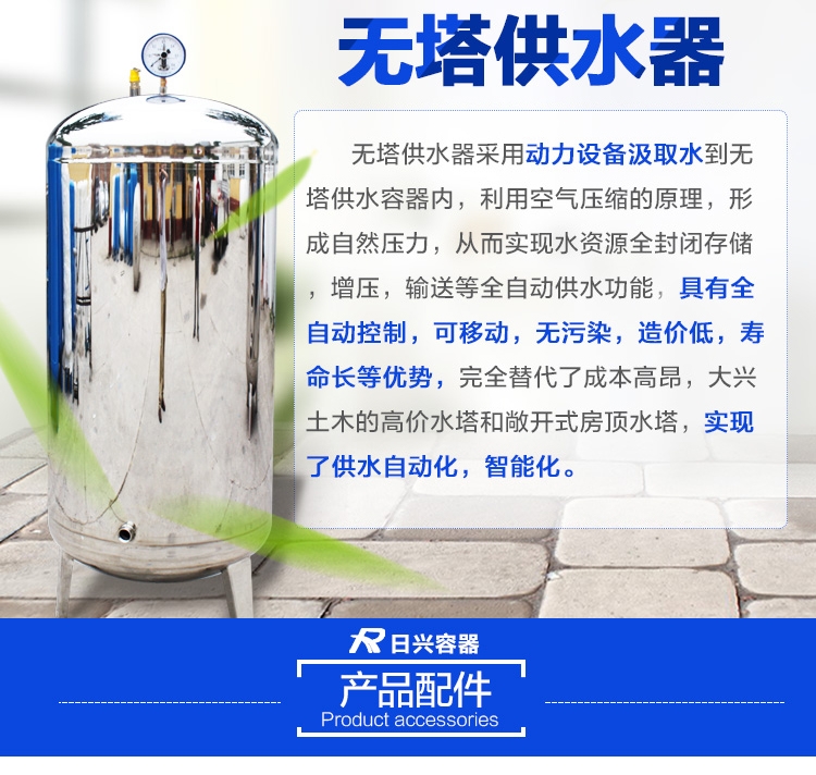 3.物业管理方便、简单:日兴家用压力罐为数字智能控制全自动运行,采用罐体内压差自动调节,断电后仍可自动供水,无需专人进行管理。