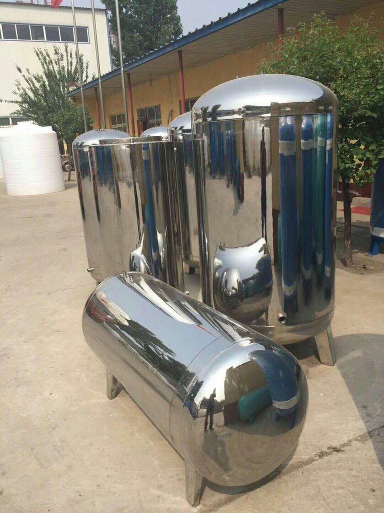 日兴压力罐详细说明 主要生产304不锈钢压力罐和碳钢压力罐,小到300升,半吨 一吨3吨 5吨大可做到10立方,其中1吨2吨3吨均有现货供应。 产品均为实物拍摄,可放心购买!