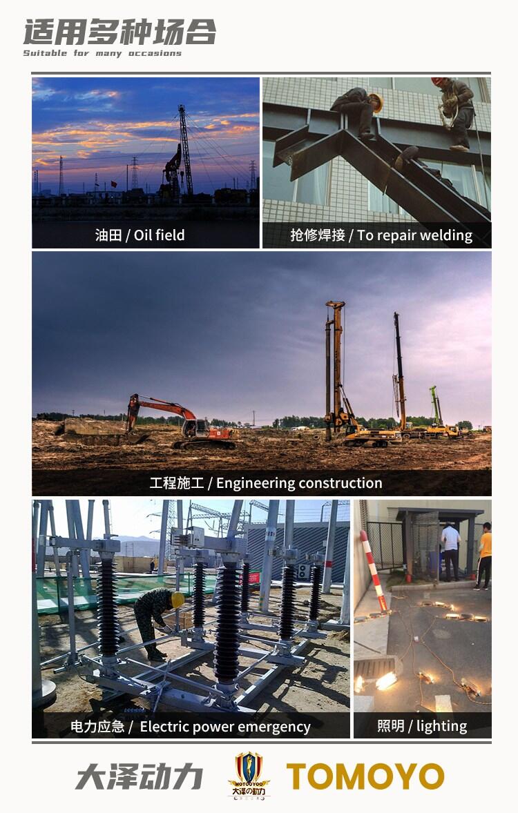 大泽柴油发电机是由内燃机驱动的发电机。柴油发电机是由柴油机和发电机组成,柴油机作动力带动发电机发电,启动迅速,操作方便,噪音较大,动力较足,适用于工地,建筑:不适用于公共人多场合。