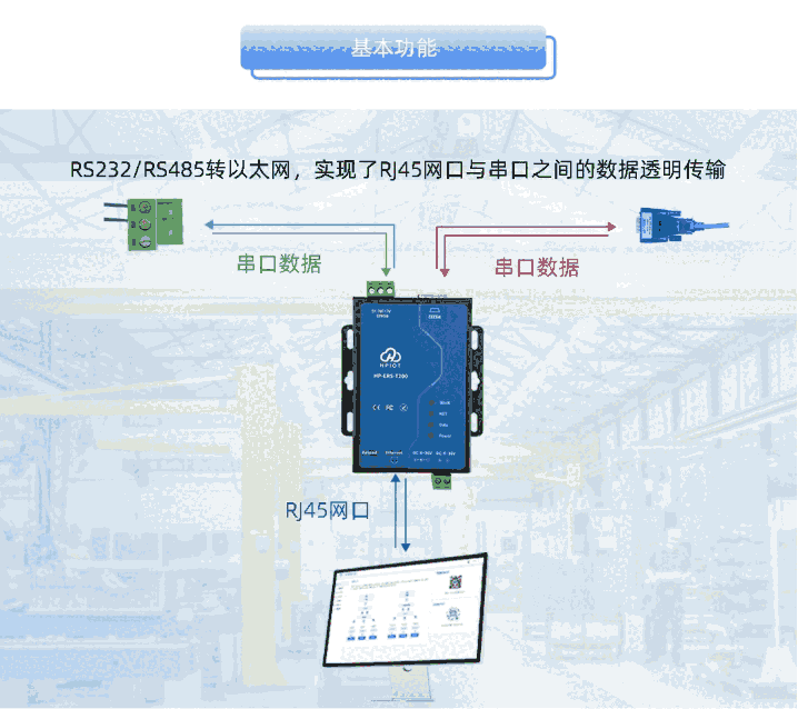 HP-ERS-T200是一款工业级双串口服务器,实现了RJ45网口与RS485或RS232之间的数据透明传输;支持Modbus网关功能;支持多种保活机制;支持注册包+双向心跳包、虚拟串口、自动重连等功能