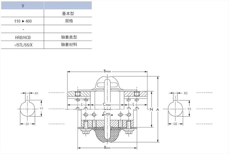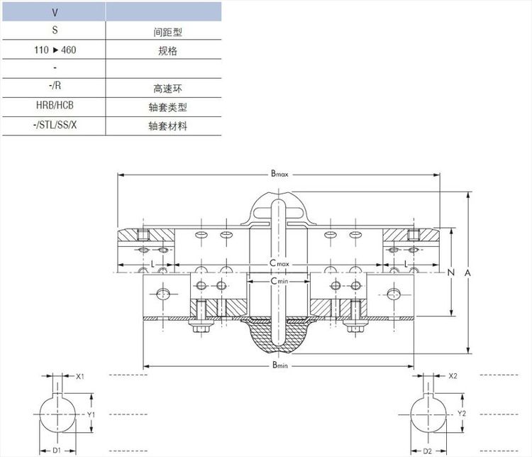 D.易于对中,可正反安装的轴套可容纳多种轴间隙, 轴套可提供不开孔、订制孔或者加衬套, 轴套的材料可自选。