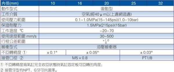 1.缸径:10、16、20、25、32等可选。每种缸径分别对应多种规格行程,方便选用。 | |||||||||