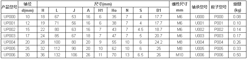 UP000~UP006,UFL000~UFL006带偏心套锁紧的微型外球面轴承; 立式、菱形、锌铝合金轴承座