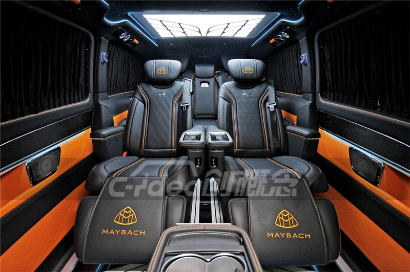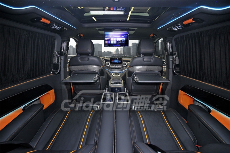而这次小编给大家带来的又是热门MPV奔驰V260的内饰改装案例,打开车门,大家可以看到整个内饰采用了黑色进口真皮包覆,橙色骨线包边,一体式碳纤材质设计,提升质感的同时还能让您感受到更舒适的触感。而且乘客舱前排座椅配置电动脚踏,将脚放在上面,舒适感极 jia ,放松全身必备良品。航空座椅集电动,通风,腿托,加热和按摩为一体,还可以360°度旋转,与后排形成4人会议,面对面交流,过程快捷又轻松。并且后排加装的三人沙发床,更是还可以让想睡觉休息的朋友直接可以把三人沙发床电动放平直接休息哦。WJJ220211XWC