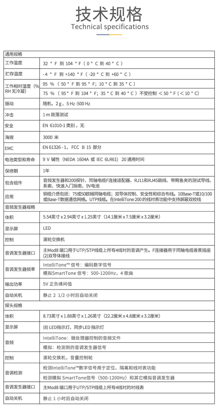 用途 | 定位和隔离电缆、检验电缆连通性 | ||