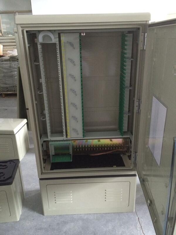288芯落地式盒式分光光缆交接箱系列产品适用于光纤接入网中主干光缆与配线光缆接点处的接口设备,可以实现光纤的熔接、终端、存贮及调度等功能。