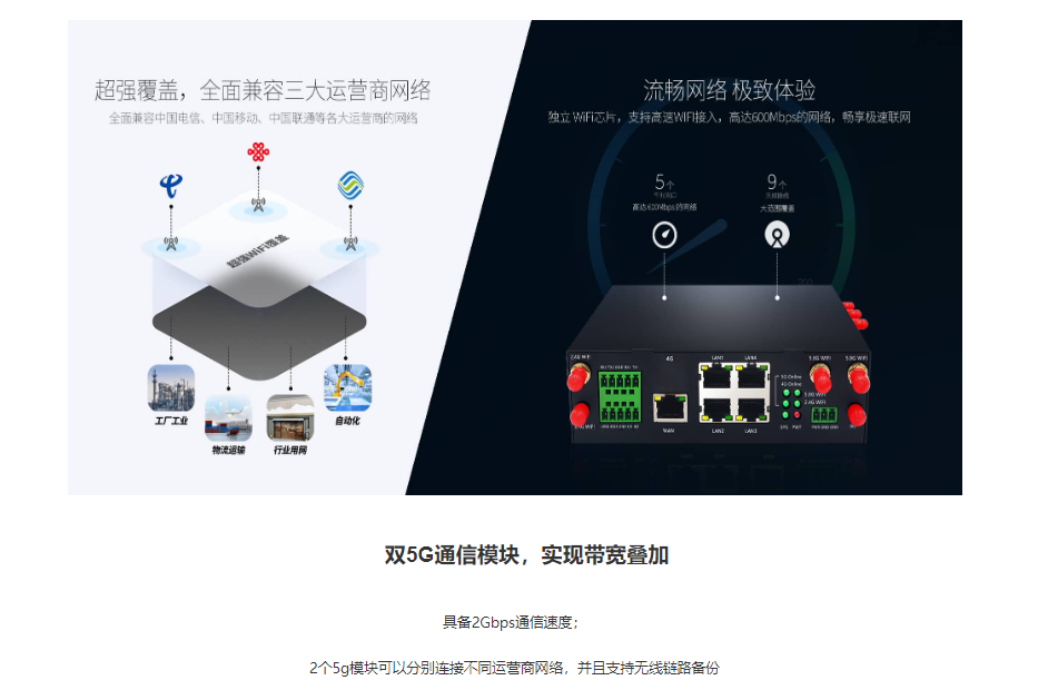 ? 支持WAN口有线宽带、3G/4G/5G无线拨号、WI-FI等方式接入互联网,为用户提供高速、安全、可靠的网络服务。
