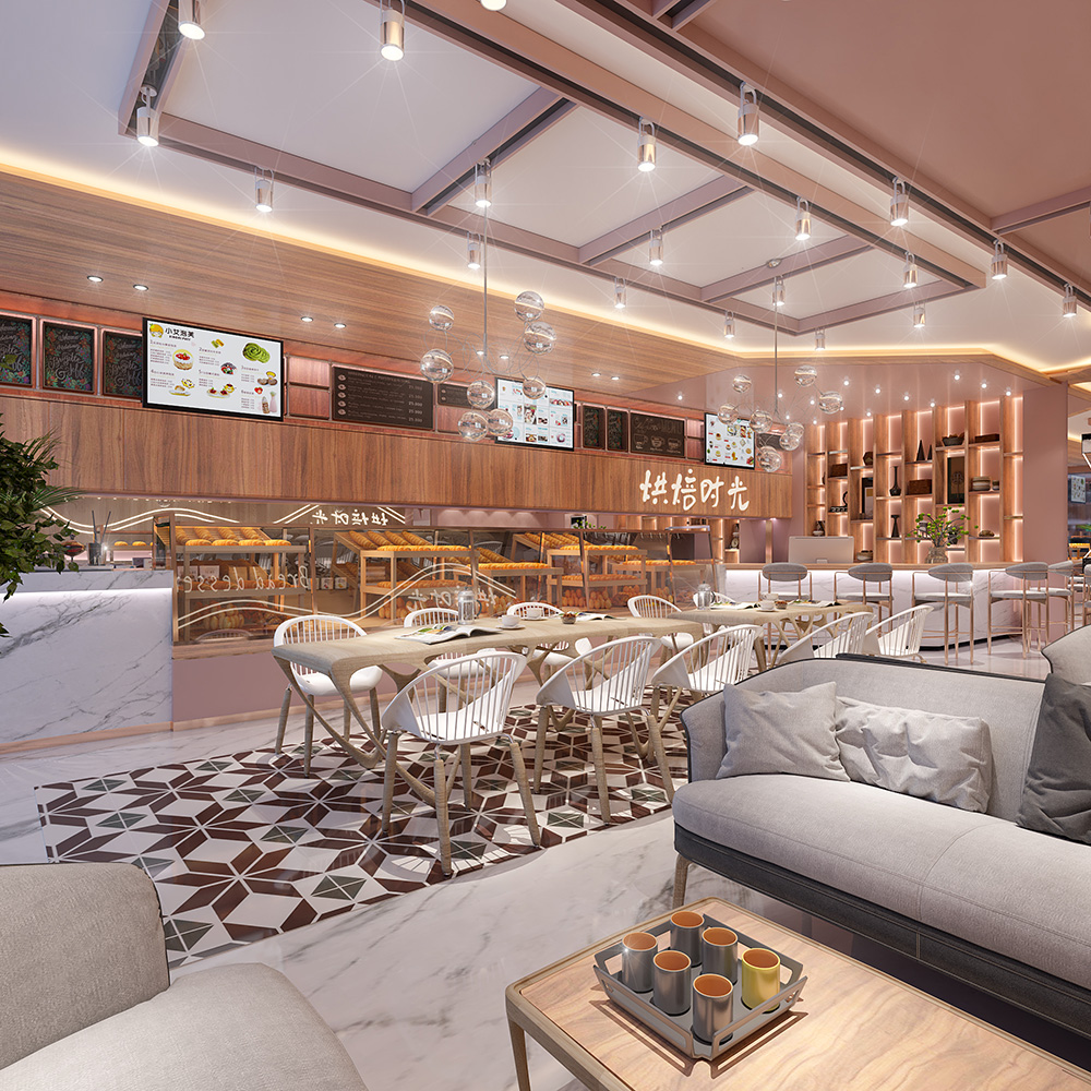 材料选择:在材料选择上,烘焙店应使用环保的材料,如壁纸、地砖、石膏板等。这些材料具有良好的装饰效果。