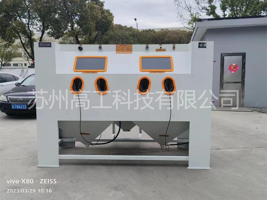 喷砂机适用行业:A.压缩空气机流量不够压力太低 换流量大的空压机(标准每把枪1m3/min)调高压力。B.喷嘴及气嘴太小 更换较大的喷嘴及气嘴。 C.所用磨料损耗粉尘太多 排除旧磨料,再装入新磨料。D.喷嘴磨损太大 更换新的喷嘴。